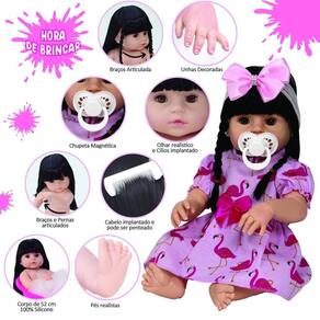 Boneca Estilo Reborn Menina Morena 52Cm Diversos Acessórios