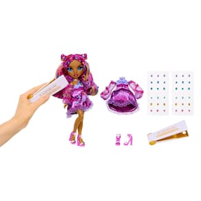 - O QUE ESTÁ INCLUÍDO: Boneca fashion de 28 cm, roupa roxa glamourosa, sapatos, pente, ferramenta para aplicar pedras, pedrinhas brilhantes e acessórios para estilizar.