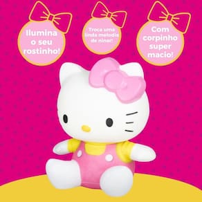 A hora de dormir ficou ainda mais fofa com a Hello Kitty Soninho! Com 20 cm de altura, ela é perfeita para acompanhar os pequenos no momento mais tranquilo do dia. Ao apertar sua barriguinha, a Hello Kitty acende uma luz suave e toca uma linda musiquinha de ninar, ajudando a criar um ambiente calmo e acolhedor para o soninho chegar mais fácil.