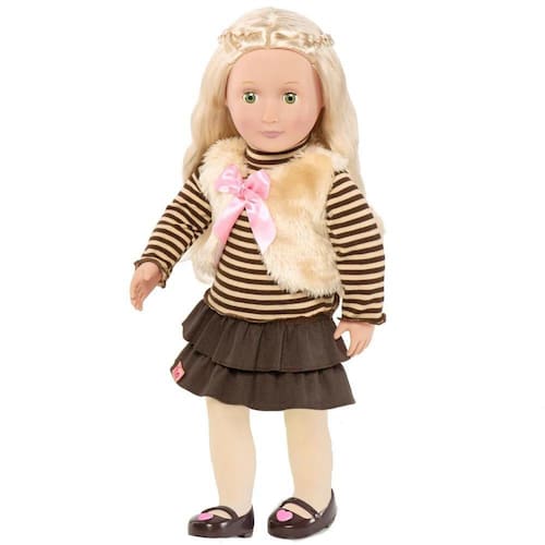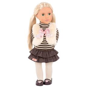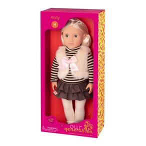 Holly ama tudo sobre moda, assim como as outras garotas Our Generation. Ela ama misturar diferentes estilos e cores, mas sua peça de roupa favorita é o seu colete de pele falsa. Ele é quentinho, estiloso e adorável, combina com tudo! Ela acredita que a melhor coisa sobre moda é que você pode expressar a sua personalidade através dela, de uma forma criativa e divertida!