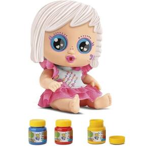 Esta linda bonequinha vem com potinhos de tinta e um pincel, permitindo que você pinte o cabelinho dela da cor que desejar.