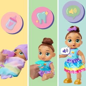 Crie momentos interativos com Sophia Sparkle, a boneca Baby Alive que cresce igual a um bebê de verdade. São 3 fases para as crianças curtirem a “infância” dessa bebê super fofa. Uma bebê para amar e cuidar com todo o carinho.