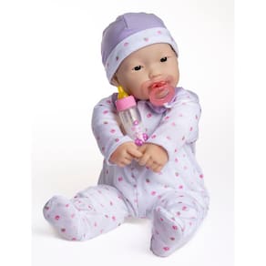 JC Toys - La Baby | Boneca asiática de 50,8 cm de corpo macio | Lavável | Roupa roxa removível com chapéu e chupeta | Para crianças a partir de 2 anos