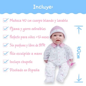 JC Toys - La Baby | Boneca de corpo médio macio de 40,6 cm | Lavável | Roupa rosa removível com chapéu e chupeta | para crianças a partir de 12 meses - O tamanho perfeito para todas as crianças // Com 40,6 cm, a La Baby é leve e fácil para mãos jovens segurarem, carregarem e abraçarem. Sem cheiro e lavável para facilitar o cuidado. - Detalhes requintados trazem vida ao bebê // La Baby agita a imaginação de uma criança com cabeça, braços e pernas de vinil macio; olhos brilhantes e brilhantes; bochechas suaves de bebê; dedos das mãos e dedos delicados; e cabelos finos finamente esculpidos. - Macio, durável e pronto para muitas brincadeiras imaginativas // La Baby é fácil de vestir com um lindo chapéu rosa e combinando com fecho de fecho aderente. Vem com chupeta própria para ajudar a colocar o bebê para dormir. - Selo de aprovação do centro parental nacional // La Baby é aprovado pelo NPC, um programa de testes independente que identifica "os melhores produtos e serviços comercializados para o público pai/filho". - Segurança testada // Aprovado para crianças a partir de meses de idade. A chupeta é anexada à roupa; sem botões ou zíperes nas roupas. Sem cílios ou pálpebras abertas. Como todas as nossas bonecas, a La Baby é livre de BPA e ftalatos.