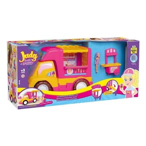 Esta sorveteria food truck, da Judy será o brinquedo favorito para desfrutar dentro ou fora de casa. O conjunto vem acompanhado de um caminhão, um carrinho de sorvete e uma boneca, para deixar a brincadeira ainda mais completa!