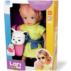 Características: Marca: Roma Modelo: Boneca Lari And Me Collection Acessorios: Bolsinha, Vestido, Cachorrinho Pet Dimensoes: Altura: 38cm - Comprimento: 23cm Tema: Passeio Pet