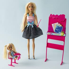 Chegou a Hora da Diversão! com a Boneca Le Sofia Professora, a Criançada Pode Brincar de Professora e Aluna Criando Histórias Incríveis e Divertidas. Contém 1 Boneca Grande com Sapatos, 1 Boneca Pequena, 1 Cadeira ,1 Quadro-Negro, 1 Livro e 1 Bastão de Ensino.