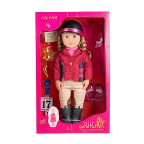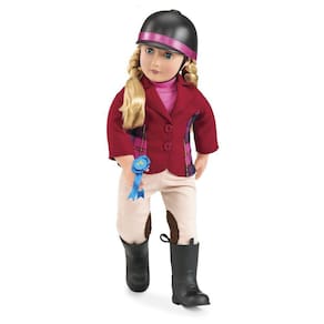 Lily Anna vem com dois modelos de roupa, um lindo traje de equitação para passeios a cavalo e um fofo vestido rosa, para que ela esteja pronta para qualquer ocasião!