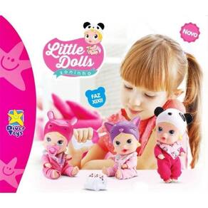 A Boneca Little Dolls Soninho veste um pijaminha macacão muito fofinho e uma bandana de bichinhos super estilosa! Para a brincadeira ficar ainda mais divertida acompanha junto a bonequinha: chupeta, mamadeira e fraldinha, afinal ela faz xixi e precisamos cuidar da bebezinha! As crianças vão amar brincar com essa bonequinha!