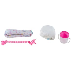 • Contém: 1 Boneca , 1 Fralda, 1 Copinho mágico, 1 Touca, 1 Chupeta com prendedor e 1 Pano