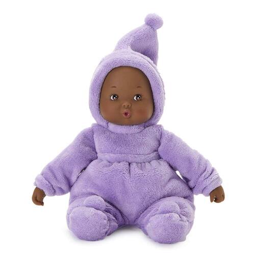 - Detalhes: o dorminhoco felpudo de lavanda torna esta boneca perfeita para se aconchegar; o corpo de tecido macio e a cabeça de vinil macio são perfeitos para mãos pequenas segurarem e puxarem; apresenta um tom de pele escuro e olhos castanhos