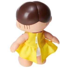 Detalhes Encantadores: A boneca Magali é fiel à sua contraparte dos quadrinhos, com detalhes que capturam sua essência, incluindo seu vestido amarelo e seu laço na cabeça.
