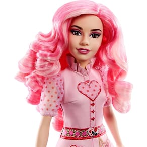 - Bridget, Jovem Rainha de Copas, a boneca vem vestida com uma roupa rosa borbulhante removível com acessórios divertidos em detalhes fiéis ao filme!