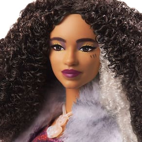 - A boneca Willa usa uma regata removível, colete com gola de pele, jeans com garras, cinto com bolsa, botins e o icônico colar de pedra da lua.