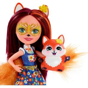 Boneco Mattel Enchantimals Felicity Fox Doll & Flick, boneca pequena de 6 polegadas, com longos cabelos castanhos, orelhas de animais e cauda peluda, saia e sapatos removíveis, presente para crianças de 3 a 8 anos
