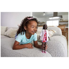 Explore um mundo de cuidar dos outros com a boneca médica Barbie Vestindo um vestido estampado colorido e um jaleco branco de médico, a boneca médica Barbie 30, está pronta para cuidar dos pacientes. A boneca médica Barbie pode examinar pacientes com seu estetoscópio para mantê los felizes e saudáveis. As crianças vão adorar a brincadeira criativa e a diversão de contar histórias com a boneca Barbie Doctor. Faz um grande presente para idades de 3 anos ou mais, especialmente aqueles que amam ajudar os outros e a área médica Marca: Não Informado