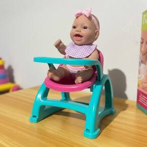 A Boneca Mini Baby Babilina Papinha é a companheira perfeita para os momentos de brincadeira. Com a boneca sentada no cadeirão possui 26 cm de altura, ela é articulada, permitindo que as crianças brinquem com liberdade e criem suas próprias histórias. Feita de 100% vinil, a boneca é segura e durável, ideal para pequenos a partir de 3 anos.