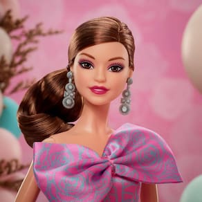 Barbie Boneca emblemática dos desejos de aniversário, boneca fashion colecionável em cetim, vestido rosa com cabelo castanho ondulado - Faça um desejo a uma boneca! Esta linda boneca Desejos de Aniversário da Barbie é um brinquedo encantador para um ente querido em seu dia especial. - Barbie veste uma saia íntima rosa acetinada, com uma estampa desabrochando de flores sobre o corpete – O lindo laço em seus ombros a torna o presente perfeito! - Seus brincos de prata caídos se destacam em seu cabelo castanho ondulado, enquanto seus saltos rosa de tiras complementam seu conjunto de aniversário perfeitamente polido. - A caixa para ocasiões especiais não apenas apresenta um doce desejo de aniversário da Barbie, mas também um espaço personalizável para escrever uma nota para o destinatário! - Explore toda a coleção Barbie para ver mais bonecas colecionáveis. Cada um é vendido separadamente, sujeito à disponibilidade.