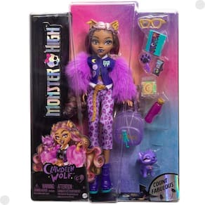 - visual novo: a boneca monster high clawdeen wolf tem um visual incrível em um outfit de moda feroz ela vem com seu animal de estimação crescent e acessórios dignos de uivos.