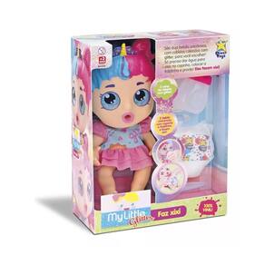 Esta bonequinha articulada possui um lindo penteado com cabelos coloridos em tons de rosa e azul, além de olhos grandes e brilhantes com glitter que capturam a atenção de todos. A experiência de brincar com a My Glitter Faz Xixi é simples e divertida: basta dar água a ela usando a mamadeira inclusa, colocar a fraldinha e, em poucos instantes, a boneca faz xixi de verdade!