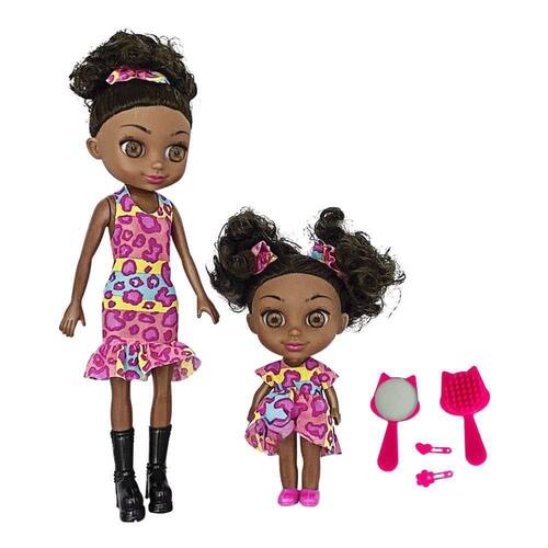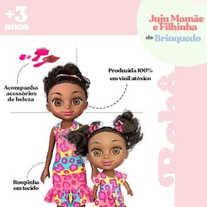 Boneca Negra Juju Mommy Mamãe e Filhinha com Acessórios Boneca Negra Juju Mommy Mamãe e Filhinha com Acessórios ============================================================ Contém: 01 Boneca Mamãe 01 Boneca Filinha 01 Espelho 02 Pesilhas