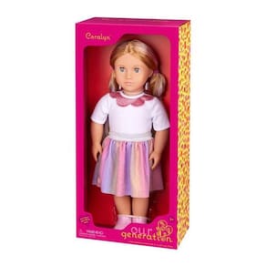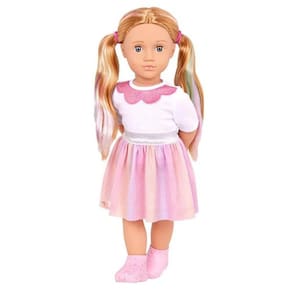 Conheça as encantadoras Bonecas Our Generation, uma opção perfeita para brincadeiras criativas e imaginativas. Com aproximadamente 46cm de altura, essas bonecas cativantes apresentam uma diversidade de estilos e personalidades. Our Generation vai além de ser apenas uma boneca. É um mundo de possibilidades para crianças de todos os estilos e gostos. Com nossas bonecas, conjuntos de roupas e acessórios incríveis, incentivamos a imaginação e o desenvolvimento de histórias únicas. Our Generation: essa é a nossa história, e essa é a nossa turma! Conheça a Boneca Coralyn da Our Generation, a companheira perfeita para suas brincadeiras! Seus belos olhos violeta que abrem e fecham e seu longo cabelo com mechas multicoloridas, é perfeito para divertidos penteados! Coralyn chega vestindo uma saia colorida com cintura brilhante, uma blusa com gola adornada e adoráveis botinhas. Quando é hora de experimentar novos visuais, seu traje possui fechos fáceis para vestir e remover rapidamente. Isso permite que você misture, combine e crie seus looks favoritos com facilidade! Adquira a boneca Coralyn da Our Generation e embarque em aventuras inesquecíveis! Itens inclusos: 1 boneca de 46cm 1 blusa 1 saia 1 par de sapatos 1 par de elásticos de cabelo