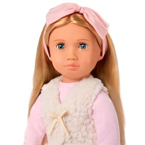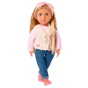 A boneca Emmie da Our Generation, com 46 cm de altura, é perfeita para quem adora moda e aventuras cheias de estilo. Seus olhos azul-claro que abrem e fecham, junto ao longo cabelo loiro claro, oferecem muitas possibilidades de penteados criativos. Com corpo macio e articulado, ela permite poses realistas e troca fácil de roupas, deixando a brincadeira mais divertida e dinâmica.