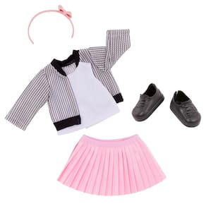 Ela chega vestida com uma jaqueta moderna, blusa casual, saia plissada rosa vibrante, tiara com laço, calcinha e sapatos, ideal para brincadeiras de vestir e contar histórias. Suas articulações no pescoço, braços e pernas facilitam a troca de roupas e ampliam a diversão, permitindo que as crianças explorem a criatividade com as roupas e acessórios Our Generation.