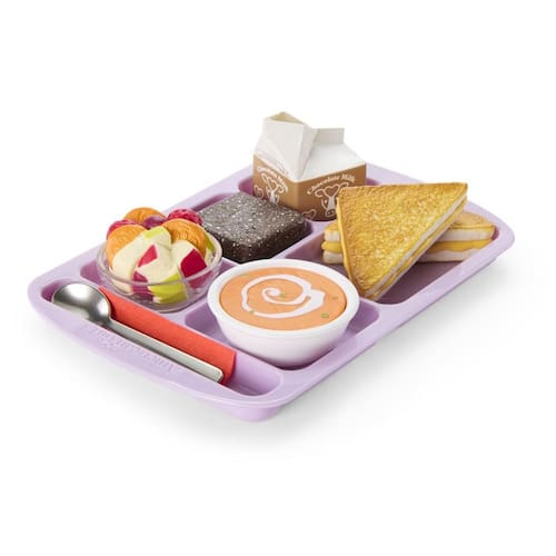 Conjunto de brinquedos American Girl Truly Me de 18 polegadas Doll Hungry for Hot Lunch com sanduíche, sopa, frutas e brownie, para maiores de 6 anos