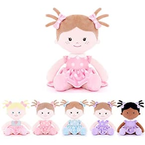 Onetoo Plush Rag Doll Sleeping Cuddle Buddy Doll Soft Baby Doll for Girls First Baby Doll Use Pink Skirt Dress 14"(Série Milly)