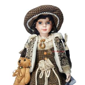 Boneca Camponesa Francesa de Porcelana (Não é um Brinquedo)