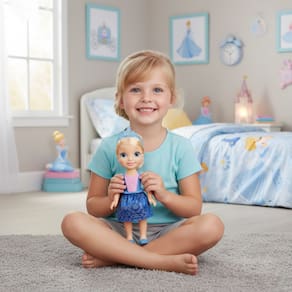 Inspirada na princesa do sapatinho de cristal, ela traz toda a graça e esperança de quem acredita nos sonhos. Com vestido azul reluzente, uma linda tiara combinando e design fiel ao filme, a boneca convida as crianças a viverem momentos cheios de fantasia revivendo o grande baile, o encontro com o príncipe ou criando novas histórias cheias de magia e finais felizes.