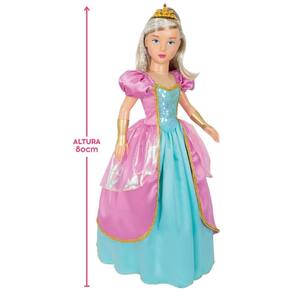 A magia está nos detalhes Com um visual encantador e clássico dos contos de fadas, a boneca possui 80cm de altura e cabeça, braços e pernas articulados. Acompanha uma linda coroa, um par de lindos sapatinhos e um majestoso vestido de princesa, repleto de brilho e detalhes encantadores.