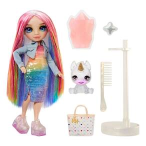 A boneca Amaya Raine veste um look vibrante com brilhos e cores do arco-íris, exibe longos cabelos coloridos e maquiagem cintilante que destaca seus olhos de vidro e cílios longos, ela trás acessórios personalizáveis, como sapatos e bolsas, que podem mudar de cor com um toque de slime. Acompanha um bichinho mágico que também muda de cor.