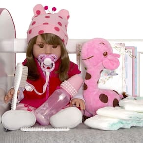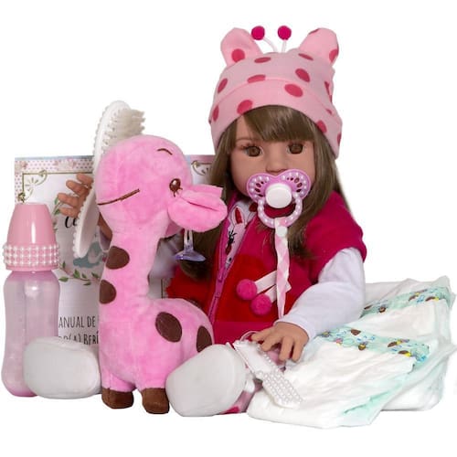 A boneca reborn girafinha é perfeita para encantar qualquer criança, além de ser uma boneca sofisticada com alto padrão de qualidade, a boneca girafinha é também utilizada para reborn, pois é um produto que se aproxima da realidade e traz desde sua fabricação toda delicadeza necessaria. A boneca estimula a interação entre pais e filhos, coordenação manual, estimula a criatividade e imaginação da criança, para deixar a brincadeira ainda mais divertida, além de delicada possui um delicioso cheirinho de bebe perfumada.Características:- 01 bebê reborn- 01 conjunto de roupa de girafinha- 01 mamadeira- 01 chupeta magnética- 01 kit pente e escova- 01 girafa de pelúcia- 03 fraldas- 01 sapatinho variado com disponibilidade do estoque - 01 predendo de chupeta- 01 presilha de cabelo- 01 manual de cuidados- 01 certidão nascimento- 01 certidão de vacinação- 01 exame do pezinhoMedidas aprox.: - boneca: 52cm de altura.Peso aprox.: - 1,707gMaterial: - silicone.Fabricante: - cegonha reborn dolls- certificado INMETRO CE-BRI/IQB-167- recomendado para crianças maiores de 03 anos Tags: brinquedos, criança, infantil bebê reborn, princesa, girafinha, girafa, boneca, barata, silicone, pano, realista, baby, kiss, menina, cheirinho, banho, vinil, cheirosa, brinquedo, loira.