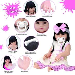 Tags: Boneca, Bebe, Reborn, Realista, Menina, Infantil, Silicone, Princesa, Linda, Morena, Loira, Fofa, Banho, Enxoval, Completo, Grande, Baby Alive.