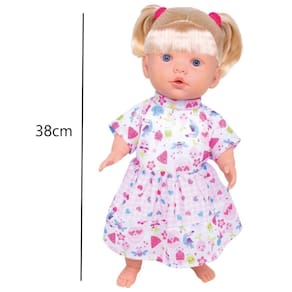 Boneca Marcelle 60 Frases Loira Milk Brinquedos A Boneca Marcelle Frases Loira é perfeita para proporcionar momentos de interação e diversão para as crianças. Com 38cm de altura, esta boneca encantadora fala 60 frases, promovendo um vínculo emocional e estimulando o aprendizado de forma lúdica. Feita com tecido macio, a Boneca Marcelle é agradável ao toque e proporciona conforto ao brincar. Suas frases são variadas e interagem com a criança, incentivando o desenvolvimento da comunicação, da empatia e da criatividade. Ideal para momentos de brincadeira, aprendizado e afeto, a boneca ajuda no desenvolvimento emocional e social das crianças. Com um mecanismo de fácil utilização, basta apertar o botão para que a boneca comece a falar suas frases divertidas e educativas, tornando a brincadeira ainda mais envolvente. A Boneca Marcelle Loira é a companheira ideal para estimular o desenvolvimento cognitivo e emocional das pequenas. Especificações: - Fabricante: Milk - Referência: 675 - Medidas Aproximadas da Boneca: 38CM - Composição: Enchimento de fibra, tecido e vinil - Idade Recomendada: +3 Anos - Utiliza 3 baterias lithium AG13/LR44 1,5V - EAN: 7898283856758 - Registro 001524/2019 OCP 0006 - Compulsório INMETRO Contém: - 1 Boneca Marcelle Loira