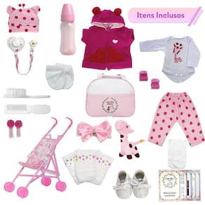 A nossa empresa tem a missão de garantir a total satisfação de seus clientes, onde a qualidade e o atendimento excepcional são nossa prioridade Estamos muito felizes em apresentar a Boneca Bebê Reborn Girafinha para você, um item cuidadosamente selecionado para atender às suas necessidades. Compre agora e experimente a diferença em comprar com a nossa loja.A Boneca Bebê Reborn Girafinha é o sonho das meninas Produzida 100% em vinil siliconado, essa boneca pode sentar, deitar e fazer tudo que a sua imaginação deixar. Com seus olhos castanhos e detalhes realistas ela é encantadora e apaixonante. Sua criança merece a melhor qualidade de bebê reborn Marca: Cegonha Reborn DollsModelo: Boneca Bebê Reborn GirafinhaCor: BegeMaterial: Vinil Siliconado AtóxicoCaracterísticas Principais: Membros Articulados, Corpo de Silicone, Detalhes Realistas.Medidas Aprox.: Altura da Boneca: 46cm Peso Aprox. Da Boneca: 0,745 Kg Certificado INMETRO Recomendado para crianças maiores de 03 anosConteúdo:1 Bebê Reborn Cabeça, Membros e Corpo de Vinil 1 Conjunto de Roupa Girafinha1 Par de Cílios1 Par de Brinco1 Chupeta 1 Mamadeira Simples5 Certificados3 Fraldas1 Laço Cetim2 Presilhinha1 Par de Luvas1 Bolsa Maternidade1 Prendedor de ChupetaKit Pente e Escova Simples1 Par de Sapatinho1 Pelúcia1 Carrinho InfantilGarantia30 dias de garantia oferecida pelo fabricante.Dúvidas Frequentes:1. Ela acompanha ItensR. Sim, todos os itens da descrição.2. Ela emite algum somR. Não, ela não emite nenhum som.3. Pode dar banho na bonecaR. Sim, pois o material do corpo é de Silicone.4. Pode escolher a cor dos olhos da bonecaR. Não, os olhos já vêm de fábrica.Tags: Realista, Menina, Infantil, Silicone, Princesa, Linda, Morena, Loira, Fofa, Banho, Enxoval, Completo, Grande, Baby Alive.Homologação Inmetro: 0205/21-BQ-01