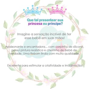 A nossa empresa tem a missão de garantir a total satisfação de seus clientes, onde a qualidade e o atendimento excepcional são nossa prioridade Estamos muito felizes em apresentar a Boneca Bebê Reborn para você, um item cuidadosamente selecionado para atender às suas necessidades. Compre agora e experimente a diferença em comprar com a nossa loja.A Boneca Bebê Reborn é o sonho das meninas Produzida 100% em vinil siliconado, essa boneca pode sentar, deitar e fazer tudo que a sua imaginação deixar. Com seus olhos castanhos e detalhes realistas ela é encantadora e apaixonante. Sua criança merece a melhor qualidade de bebê reborn Marca: Cegonha Reborn DollsModelo: Boneca Bebê RebornCor: MarromMaterial: Vinil Siliconado AtóxicoCaracterísticas Principais: Membros Articulados, Corpo de Silicone, Detalhes Realistas.Medidas Aprox.: Altura da Boneca: 52cm Peso Aprox. Da Boneca: 0,745 Kg Certificado INMETRO Recomendado para crianças maiores de 03 anosConteúdo:1 Bebê Reborn Cabeça, Membros e Corpo de Vinil 1 Vestido1 Par de Cílios1 Par de Brinco1 Chupeta 1 Mamadeira Simples5 Certificados3 Fraldas1 Laço Cetim2 Presilhinha1 Par de Luvas1 Bolsa Maternidade1 Prendedor de ChupetaKit Pente e Escova SimplesGarantia30 dias de garantia oferecida pelo fabricante.Dúvidas Frequentes:1. Ela acompanha ItensR. Sim, todos os itens da descrição.2. Ela emite algum somR. Não, ela não emite nenhum som.3. Pode dar banho na bonecaR. Sim, pois o material do corpo é de Silicone.4. Pode escolher a cor dos olhos da bonecaR. Não, os olhos já vêm de fábrica.Tags: Boneca, Bebe, Reborn, Realista, Menina, Infantil, Silicone, Princesa, Linda, Morena, Loira, Fofa, Banho, Enxoval, Completo, Grande, Baby Alive.Homologação Inmetro: IP-BRI-0261/2022-05