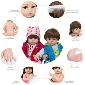 Bonecos Bebê Reborn Gêmeos são o sonho das meninas Produzidos 100% em vinil siliconado, esses bonecos podem sentar, deitar e fazer tudo que a sua imaginação deixar. Com seus lindos olhos e detalhes realistas eles são encantadores e apaixonantes. Sua criança merece a melhor qualidade de bebê reborn