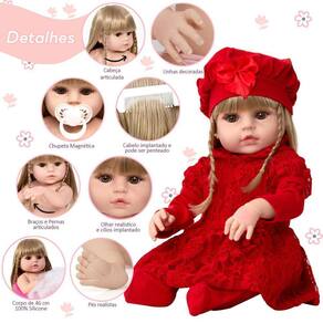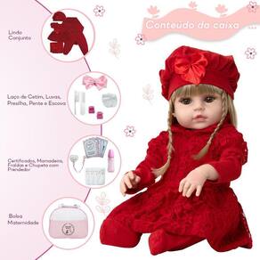 A Boneca Bebê Reborn é o sonho das crianças Produzida 100% em vinil siliconado, essa boneca pode sentar, deitar e fazer tudo que a sua imaginação deixar. Com seus olhos castanhos e detalhes realistas ela é encantadora e apaixonante. Sua criança merece a melhor qualidade de bebê reborn