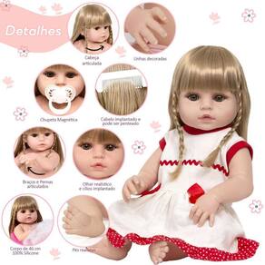 A nossa empresa tem a missão de garantir a total satisfação de seus clientes, onde a qualidade e o atendimento excepcional são nossa prioridade Estamos muito felizes em apresentar a Boneca Bebê Reborn para você, um item cuidadosamente selecionado para atender às suas necessidades. Compre agora e experimente a diferença em comprar com a nossa loja.A Boneca Bebê Reborn é o sonho das crianças Produzida 100% em vinil siliconado, essa boneca pode sentar, deitar e fazer tudo que a sua imaginação deixar. Com seus olhos castanhos e detalhes realistas ela é encantadora e apaixonante. Sua criança merece a melhor qualidade de bebê reborn Marca: Cegonha Reborn DollsModelo: Boneca Bebê Reborn Cor: BegeMaterial: Vinil Siliconado AtóxicoCaracterísticas Principais: Membros Articulados, Corpo de Silicone, Detalhes Realistas.Medidas Aprox.: Altura da Boneca: 46cm Peso Aprox. Da Boneca: 0,745 Kg Certificado INMETRO Recomendado para crianças maiores de 03 anosConteúdo:1 Bebê Reborn Cabeça, Membros e Corpo de Vinil 1 Vestido1 Par de Cílios1 Par de Brinco1 Chupeta 1 Mamadeira Simples5 Certificados3 Fraldas1 Laço Cetim2 Presilhinha1 Par de Luvas1 Bolsa Maternidade1 Prendedor de ChupetaKit Pente e Escova SimplesGarantia30 dias de garantia oferecida pelo fabricante.Dúvidas Frequentes:1. Ela acompanha ItensR. Sim, todos os itens da descrição.2. Ela emite algum somR. Não, ela não emite nenhum som.3. Pode dar banho na bonecaR. Sim, pois o material do corpo é de Silicone.4. Pode escolher a cor dos olhos da bonecaR. Não, os olhos já vêm de fábrica.Tags: Realista, Menina, Infantil, Silicone, Princesa, Linda, Morena, Loira, Fofa, Banho, Enxoval, Completo, Grande, Baby Alive.Homologação Inmetro: IP-BRI-0261/2022-05