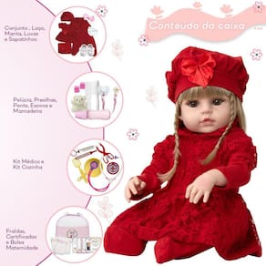 A Boneca Bebê Reborn é o sonho das crianças Produzida 100% em vinil siliconado, essa boneca pode sentar, deitar e fazer tudo que a sua imaginação deixar. Com seus olhos castanhos e detalhes realistas ela é encantadora e apaixonante. Sua criança merece a melhor qualidade de bebê reborn