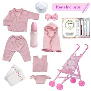 A Boneca Bebê Reborn é o sonho das meninas Produzida 100% em vinil siliconado, essa boneca pode fazer tudo que a sua imaginação deixar. Com seus olhos claros e detalhes realistas ela é encantadora e apaixonante. Acompanha um lindo carrinho para poder passear com o bebê. Sua criança merece a melhor qualidade de bebê reborn