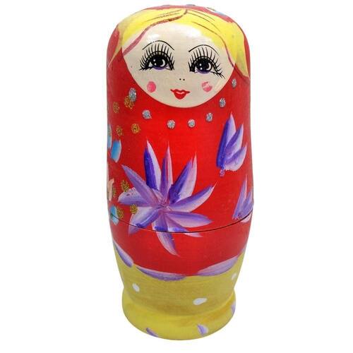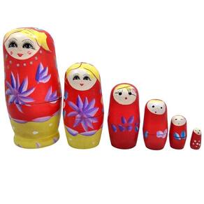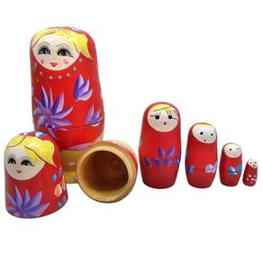 Boneca Russa Matrioska Matrioska Russa Vermelho 03 com 6 Bonecas uma Dentro da Outra 14CM em Madeira Pintada Manualmente