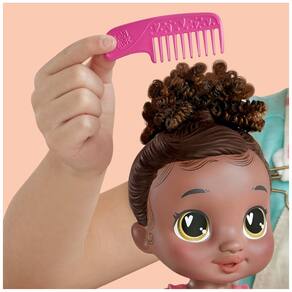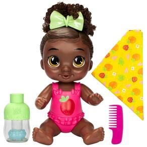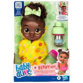 Berry Boo está pronta para a hora do banho com o conjunto de bonecas Shampoo Snuggle Com seu frasco de xampu mágico, as crianças podem fingir que estão lavando e estilizando seu cabelo. Além disso, a garrafa apresenta bolhas de faz de conta que se movem para cima e para baixo. A boneca tem um tufo de cabelo escovável no topo da cabeça e um adorável maiô embutido, tornando a perfeita para brincar na água. E, após o banho, as crianças podem enrolá la na toalha com fechos para maior aconchego e pentear seu cabelo com o pente e o laço removível. Com 11 polegadas 28 centímetros , ela é do tamanho perfeito para abraçar e carregar. Esta adorável companheira é uma ótima boneca para meninas e meninos de 3 anos ou mais. Baby Alive e todas as propriedades relacionadas são marcas registradas da Hasbro.