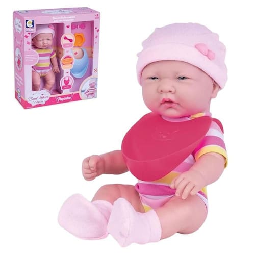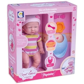 Conteúdo da Embalagem: 01 Boneca, 01 Talher, 01 Babador, 01 Pratinho
