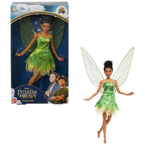 Esta boneca Tinker Bell é inspirada na personagem do filme da Disney, Peter Pan Wendy. Com um vestido verde característico, asas brilhantes e ajustáveis, e um corpo totalmente articulável, esta boneca da moda é perfeita para aventuras na Terra do Nunca. Além disso, ela tem cabelo escovável com detalhes para mais diversão. É um presente ideal para crianças que adoram Peter Pan e Wendy, permitindo que elas recriem cenas do filme ou inventem suas próprias aventuras emocionantes. Os fãs podem colecionar todos os bonecos da Disney Peter Pan e Wendy para uma experiência completa. Por favor, note que cada boneco é vendido separadamente e está sujeito à disponibilidade.