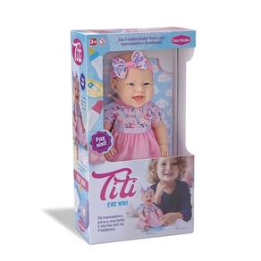A boneca titi faz xixi é a amiga perfeita para crianças. Vem com mamadeira e fraldinha, e faz xixi de verdade ideal para brincadeiras cheias de carinho e aprendizado.