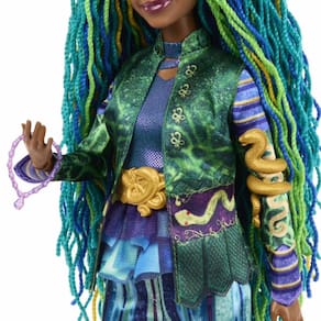 Você pode invocar a magia do mar com esta boneca de Uliana, Irmã Mais Nova de Úrsula, de Disney Descendentes: A Ascensão de Copas! Com longas tranças e roupas exclusivas, esta boneca de moda se parece com sua personagem no filme, como a bruxa adolescente do mar com traços de garota malvada. Ela dobra os braços, cotovelos, pulsos e joelhos para mergulhar em travessuras vilanescas com seu colar de conchas incluso.